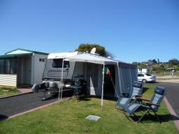 Our first caravan site in East Devonport is only 5 minutes away from the ferry terminal but it is in a perfect position where the Mersey river meets the ocean. We are lucky to be allocated an en-suite site with our own bathroom facilities. After setting up camp we head west along the Bass Highway for a short trip to get to know the area.