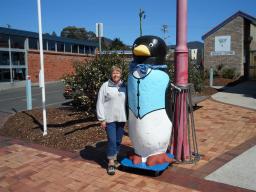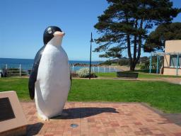 Our first stop is the small coastal village of Penguin, about 30 kms west of Devonport. Penguin is named after the small penguins who live along the spectacular coastline close to the village. The village also makes the most of its name using penguin images everywhere, including one that is 3 metres tall.