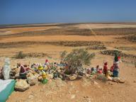 On the way to Hamelin Station we came across an unusual sight – a memorial to a small girl who must have died in an accident close by. The memorial consisted of a mound of rocks with a garden gnome on top. Since the original memorial lots more gnomes have been added in remembrance of other loved ones who have passed away.