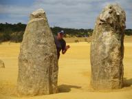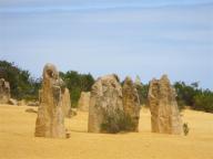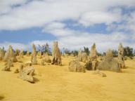 The Pinnacles are limestone formations contained within Nambung National Park, near the town of Cervantes on the Turquoise Coast. The raw material for the limestone of the Pinnacles came from seashells in an earlier era that was rich in marine life. These shells were broken down into lime-rich sands that were blown inland to form high mobile dunes. However, the manner in which such raw materials formed the Pinnacles is the subject of debate with no confirmed proven theory. They are pretty amazing to see up close.