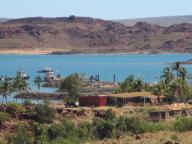 After reaching the coast road again we head back up north to visit the places we missed by taking a detour to Karijini N P. The first stop we make is to free camp on the Ashburton River close to the ruins Old Onslow. (New) Onslow is now the site of the relocated town and is situated nearby on the Pilbara coast, 1,386 Kms north of Perth.